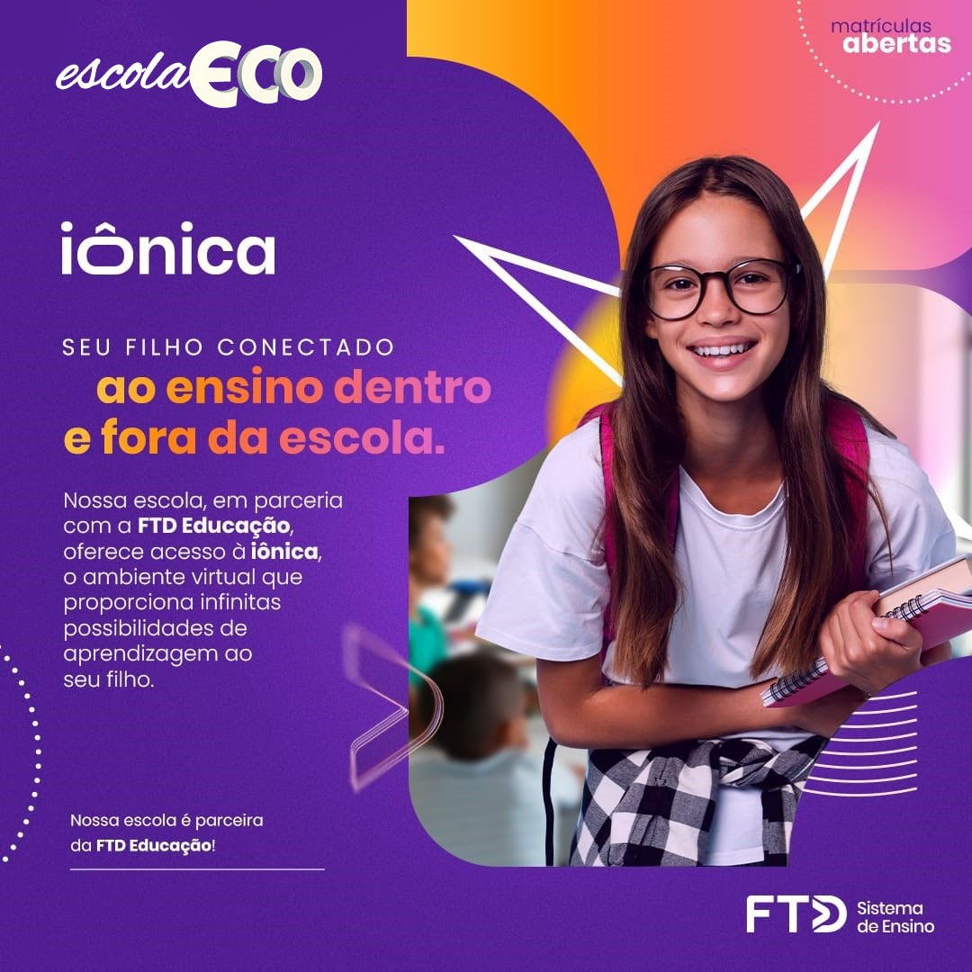 Iônica é o ambiente digital da FTD Educação que nasceu para conectar estudantes, famílias, professores(as) e gestores(as) em um só lugar. Uma plataforma repleta de recursos e facilidades, com navegação descomplicada e visualização adaptada para todos os tipos de tela: celulares, tablets e computadores.